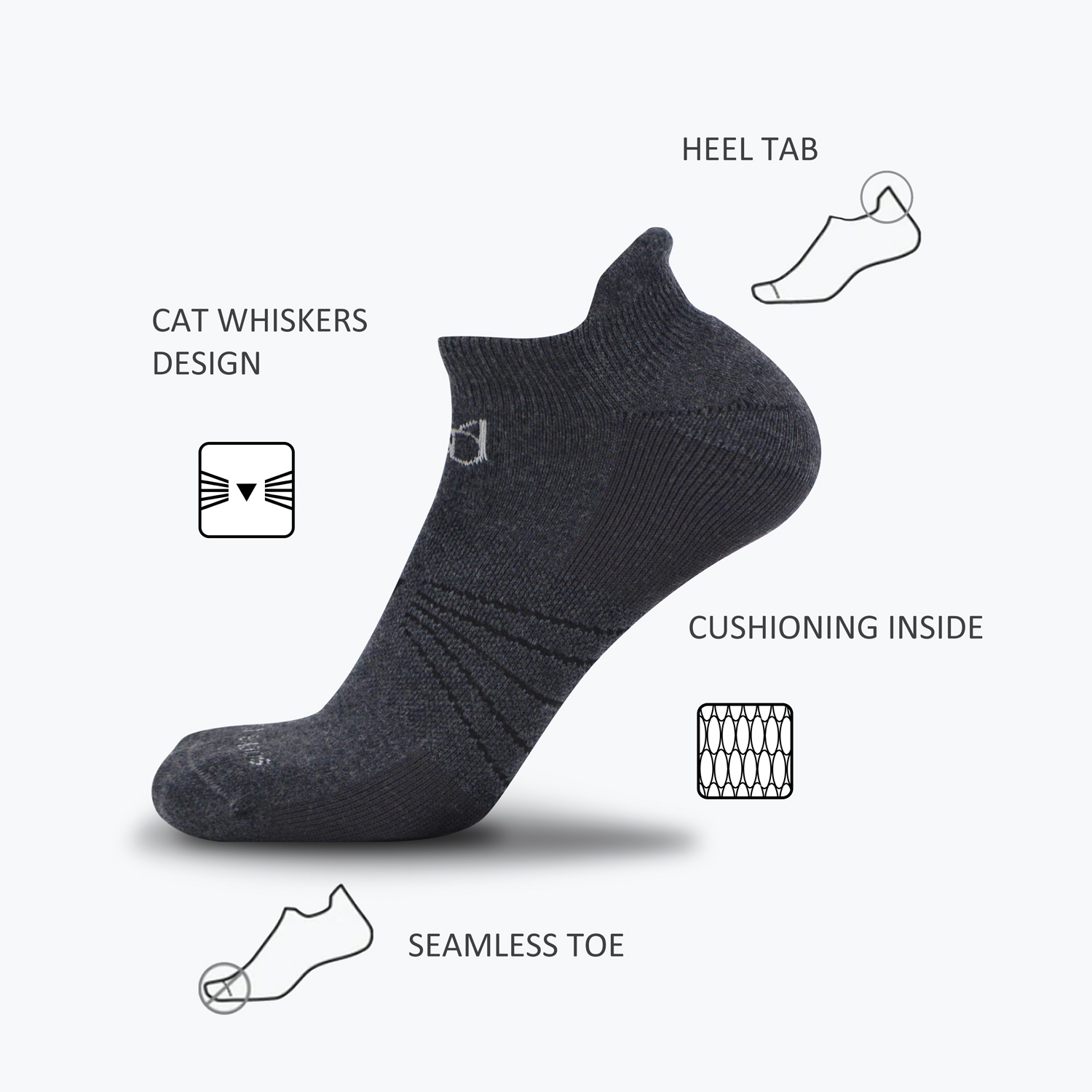 Cushion on the toe and in bottom with thicker yarn, reduces the impact and friction when your movements.